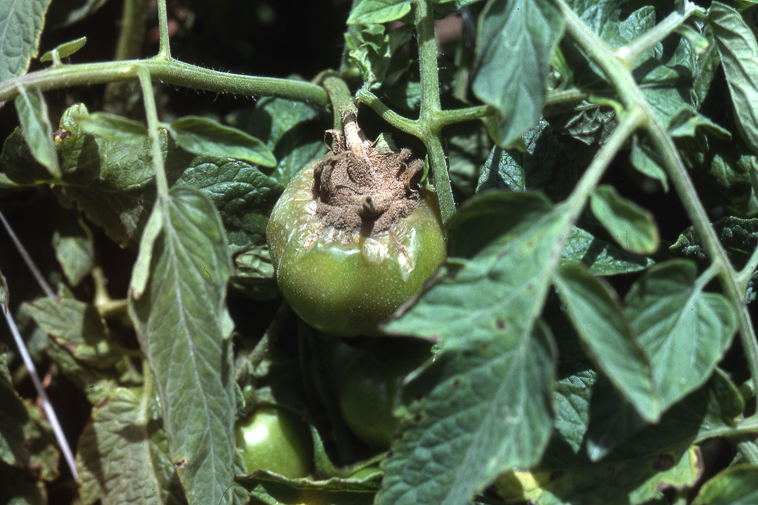 Domateste Kurşuni Küf. Bu etmen, bitkinin toprak üstü kısımlarını enfekte edebilir veya tipik olarak yaralardan girebilir. Gövde kısmında enfeksiyon başlangıcı oval ve sulu lezyonlar olarak ortaya çıkmaktadır. Bu lezyonlar yüksek nem durumunda domates tohumunu kuşatıp öldürebilen grimsi veya küflü bir tabakaya dönüşür. Gövde bölümlerinde genellikle iç içe geçmiş bantlaşma görmek mümkündür. Yaprak enfeksiyonu bir yaralanma noktasında başlar ve gri fungal sporlanma ile kaplı V biçimli bir lezyona dönüşür. Bu etmen yaygın olarak meyvenin çanak ucunu enfekte eder ve hızla yayılarak, daha sonra sulu bir çürüklüğe dönüşen gri-kahverengi lezyonlar oluşturur.