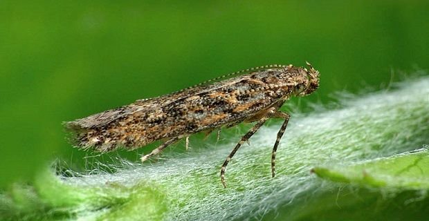 Yılda 2-6 döl verir. Erginler, beyazımsı-gümüş renkli olup vücut uzunluğu yaklaşık 3-4 mm kadardır. Ayrıca İnce ve uzun antenlere sahiptir. Kanatların ön kısmında boyuna koyu renkli üç çizgi vardır. Bunlardan uzun olan ve kenarda bulunanlar bir kavis oluşturarak kanadın orta kısmında birleşirler. Özellikle kanat ucunda siyah renkli belirgin bir benek vardır.