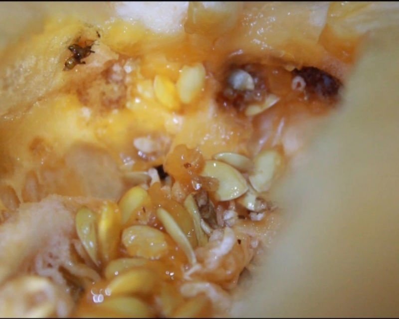 Bunlarla beraber kırmızı örümcek, kavun sineği, yaprak biti, trips ve nematodlar en önemli zararlılardandır. Özellikle kavun sineği larvaları çekirdek evini delerek kavunu bozmaktadır. Bu kısım dokuların kırıntıları ve lava pislikleri ile dolarak pis kokmaya başlamaktadır. Son olarak pis kokunun peşinden ise kavun tamamen bozulmaya başlamaktadır.