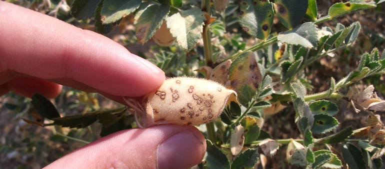 Nohutta Antraknoz Hastalık Belirtileri Bitkilerinin sap, yaprak ve tohum kapsüllerinde lekeler ve kurumalara sebep olurlar. Sap ve dalları çepeçevre saran, düzensiz irilikte açık kahveden siyahımsı koyu kahve rengine kadar değişen lekeler meydana getirirler. Sap ve dallar bu lekeli yerlerden kırılır ve kururlar. Tohum kapsülleri üzerinde dairesel lekeler oluşmaktadır.