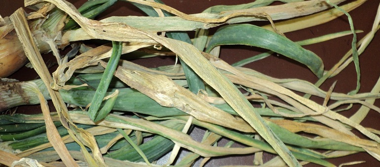 Soğan Mildiyösü ve Mücadelesi: Soğan mildiyösü, Peronospora destructor fungal etmeninin neden olduğu bir hastalıktır. Başta soğan olmak üzere sarımsakta da görülmekte olup, ilk belirtileri soğan yapraklarının dip ve orta kısımlarındaki klorotik çukurlaşmalardır. Hastalık ne kadar erken görünür ve yaygınlaşırsa ürün kaybı da o nispette büyük olur.
